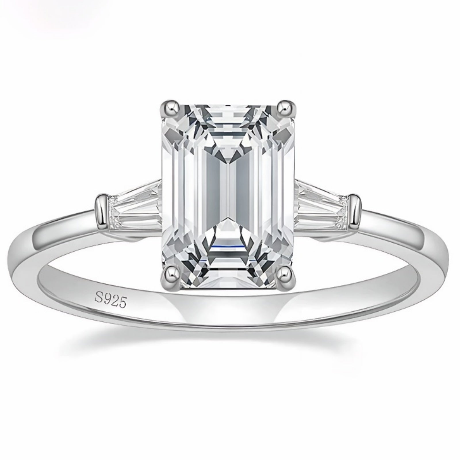 - 【Classical Design & Comfortable】The metal of the ring is 925 sterling silver that is tarnish-resistant, ensuring there is no tarnish residue on the skin,ensuring that your special moment will be cherished for years to come.It is featuring a 3-carat Emerald cut zirconia as the centerpiece, which combines modern elegance with exceptional sparkle,it is perfect addition to any jewelry collection.
