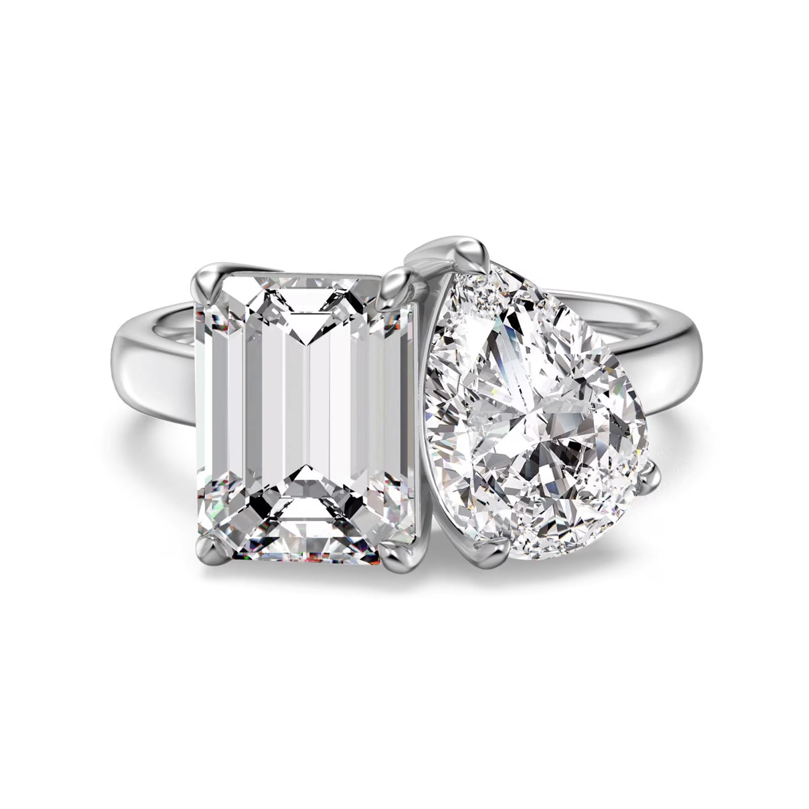 Flydeer Engagement Rings for Women 925 Sterling Silver Toi Et Moi Emerald & Pear Cut Wedding Ring 5A CZ Two Stone Ring for Her Size 5-9