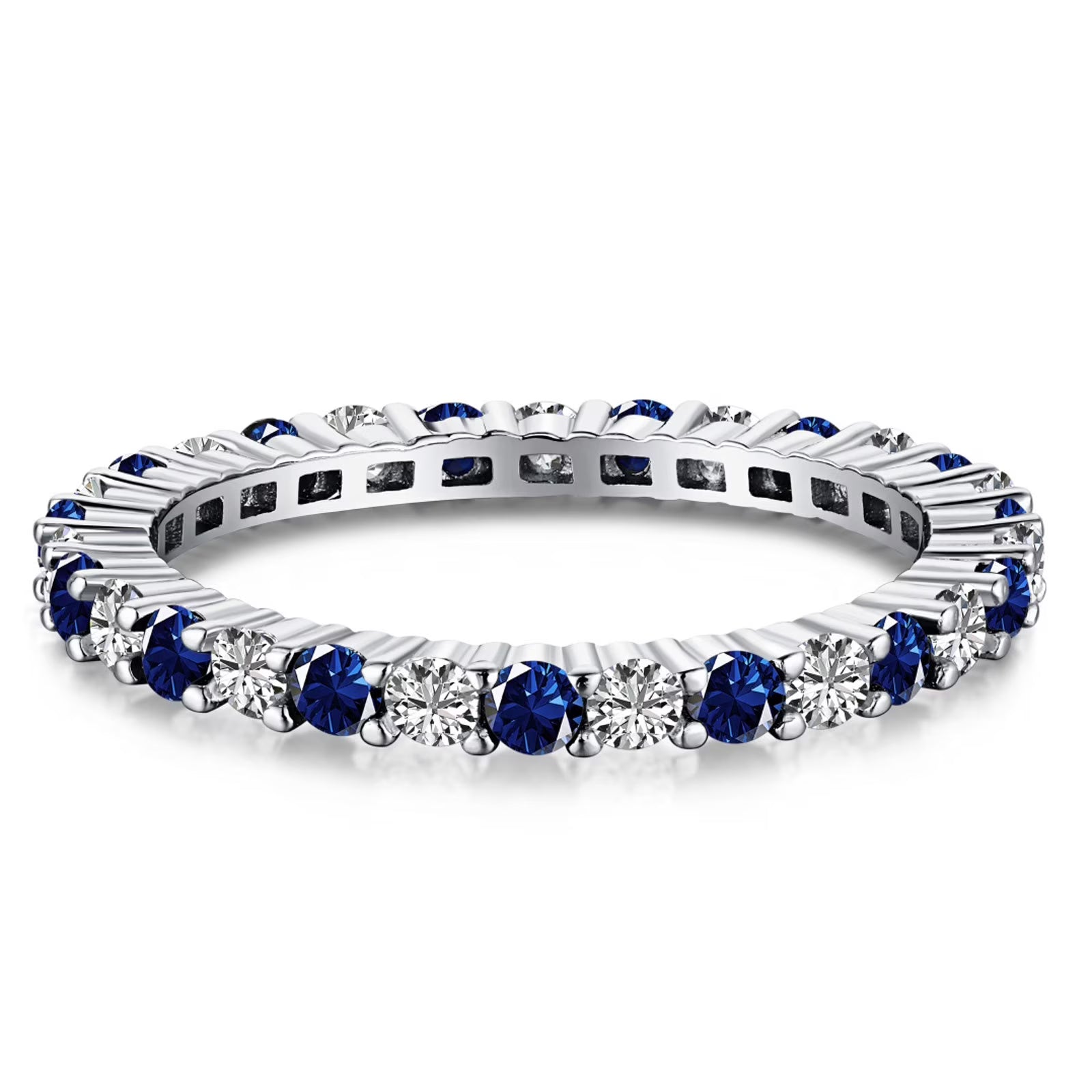Flydeer Wedding Band for Women 925 Sterling Silver Round Cut 5A CZ Full Eternity Stackable Engagement Ring Blue Sapphire Size 6-9